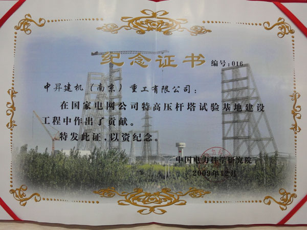 我公司塔吊ZSC80140因在特高壓桿塔試驗基地建設工程中出色表現(xiàn)獲得中國電力科學研究院高度評價。