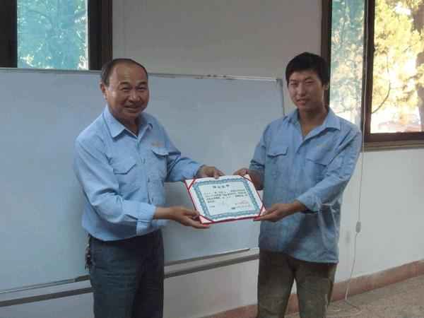 青青艷陽五月天 萬類花朵竟?fàn)幤G,在此春暖花開的大好之際迎來了中昇建機(jī)第一期英語培訓(xùn)班結(jié)業(yè)頒獎(jiǎng)儀式的開幕?! ”敬晤C獎(jiǎng)儀式的參會(huì)人員主要有管理部主任王德華先生、中昇英語教育訓(xùn)練負(fù)責(zé)人陸偉老師,以及各位獲獎(jiǎng)人員。