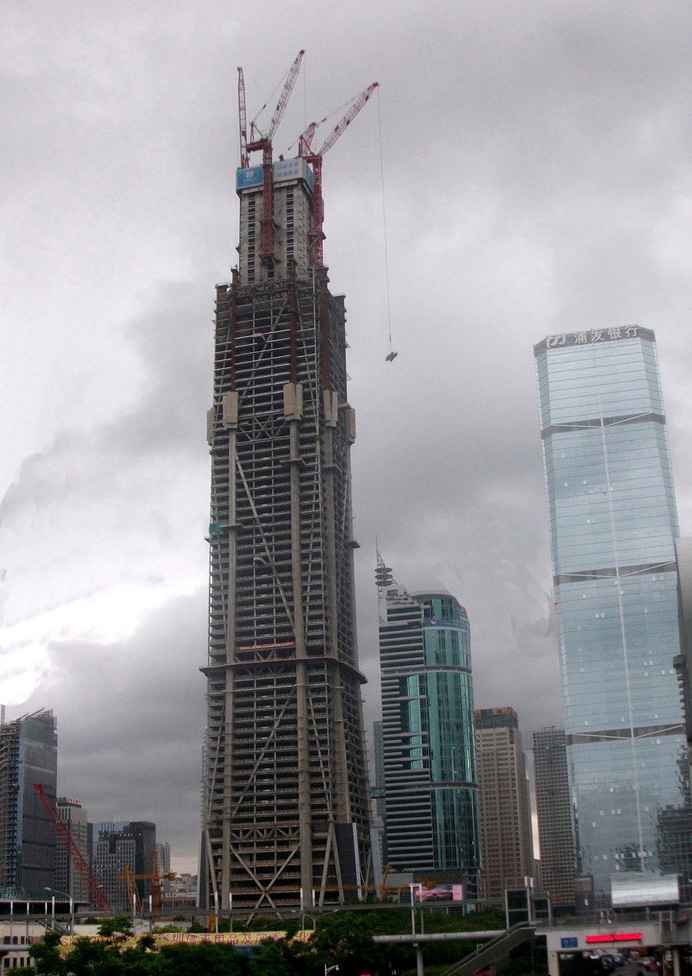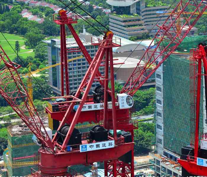 由中建一局承建的深圳平安國際金融大廈工程采用了中昇建機塔機ZSL2700兩臺,吊裝順利進行!ZSL2700在世界高層鋼結構建設中,屬超大型的內爬式動臂塔式起重機。ZSL2700采用柴油發(fā)動機引擎驅動,該塔機最大工作幅度為55m,而在27m吊裝幅度范圍內可吊重達100t,最大起升高度達660m,起升速度達110m/min。其吊裝性能和技術水平在國內處于領先地位!
