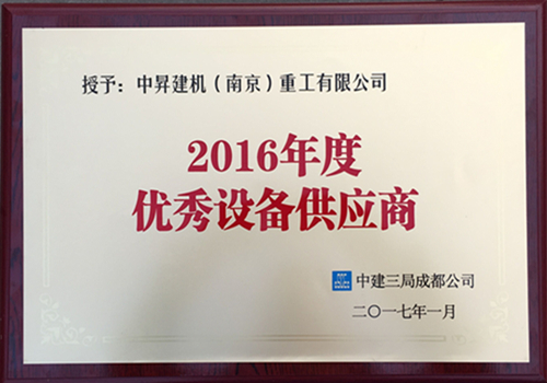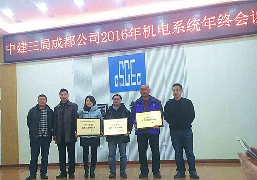 2017年1月9日,我公司在中建三局成都公司召開的年度供應(yīng)商大會上,通過“專家組全年度定期設(shè)備檢查,項目服務(wù)評價綜合打分”的標(biāo)準(zhǔn)評核體系考核,從38家注冊供應(yīng)商中脫穎而出,被評為“2016年度優(yōu)秀供應(yīng)商”的榮譽稱號。