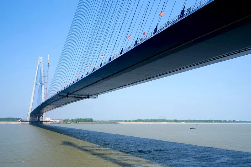 全長(zhǎng)7548米的青山長(zhǎng)江大橋,主跨達(dá)938米,是武漢四環(huán)線跨越長(zhǎng)江的控制性工程之一,也是武漢市的第11座長(zhǎng)江大橋。橋面比武漢沌口長(zhǎng)江大橋還寬兩米,成為目前跨越長(zhǎng)江橋面最寬的橋梁。
