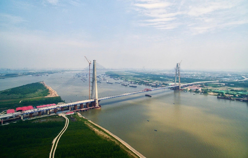 青山長(zhǎng)江大橋采用中昇建機(jī)動(dòng)臂式塔吊ZSL1150(64T)一臺(tái),該項(xiàng)目是目前世界上跨度最大的全漂浮體系斜拉橋。這種橋梁的主橋鋼梁沒(méi)有橫梁支撐,依靠斜拉索的拉力處于全懸浮狀態(tài),顯得較為獨(dú)特。