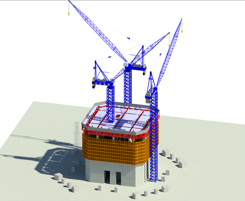 該項目采用中昇建機(jī)ZSL3200一臺,ZSL2700一臺,ZSL1500兩臺。項目核心筒結(jié)構(gòu)高達(dá)482.6米,核心筒歷經(jīng)兩次收縮,外墻從底到頂不斷變化,對模板施工要求高,施工操作平臺設(shè)計困難,兼顧其他功能的同時,要考慮層高多變以及外墻不斷變化的因素。