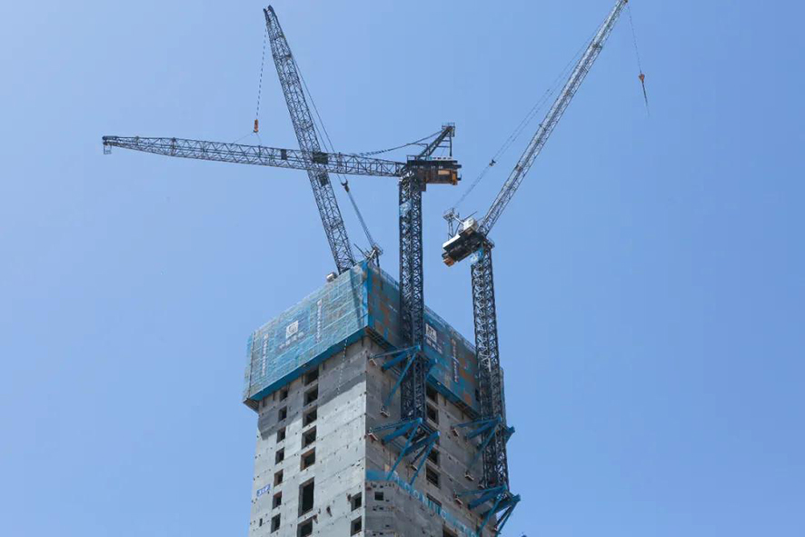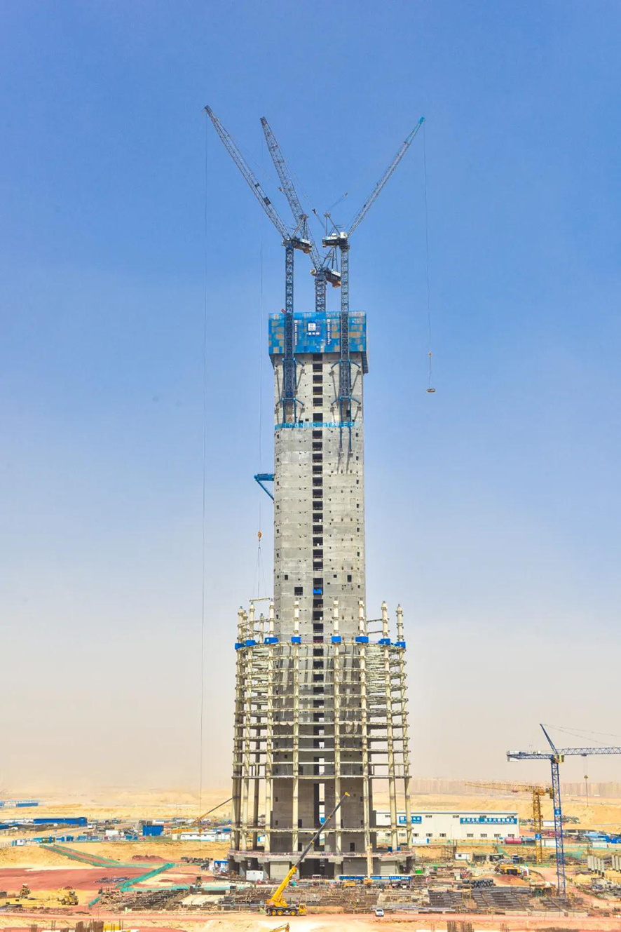 非洲第一高樓——埃及新首都CBD標志塔施工建設(shè)中共有ZSL380、ZSL850和ZSL1700三臺動臂塔吊投入使用,三臺動臂塔吊扮演著不可或缺的角色。此次ZSL380和ZSL850動臂塔吊高空移位爬升的同時,ZSL1700動臂塔吊完成第八次內(nèi)爬頂升。