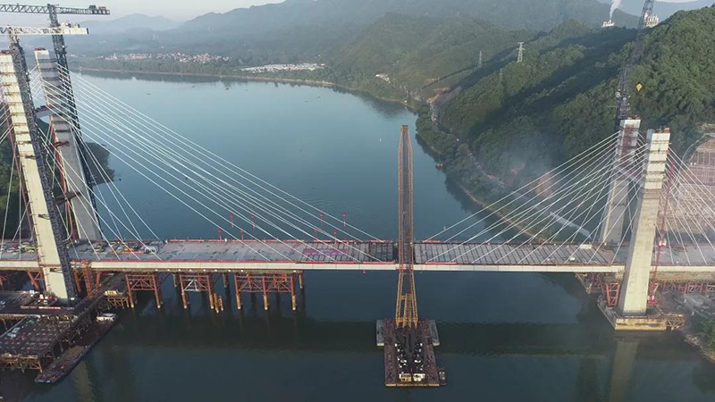 該工程采用由我公司生產(chǎn)研發(fā)的兩臺(tái)ZSC2200、一臺(tái)ZSL2700塔機(jī)完成吊裝任務(wù)。其中,富春江大橋?yàn)槿€控制性工程,為國內(nèi)首座設(shè)計(jì)時(shí)速350公里的4線無砟軌道高低塔斜拉橋,全長535米,主跨300米,設(shè)計(jì)為混合梁斜拉橋,采用高、低塔非對稱邊跨布置。主墩索塔設(shè)計(jì)均為“H型”橋塔,主梁采用鋼混組合結(jié)構(gòu)。