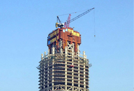 由中建三局承建的武漢中心大廈,建筑高度428米,采用中昇建機ZSL1250(最大吊重64t)。 2014-02-24 |