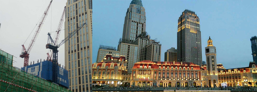 建筑高度380米,采用中昇建機(jī)ZSL3200(100T)及ZSL750(50T)各一臺(tái)。