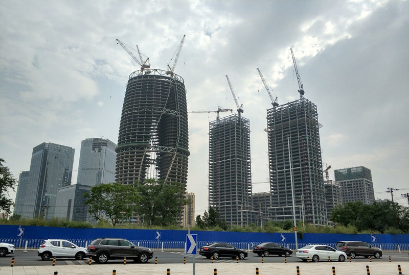 施工高度一棟200米、一棟180米,采用中昇建機(jī)ZSL850(50t)一臺(tái)、ZSL750(50t)一臺(tái)。