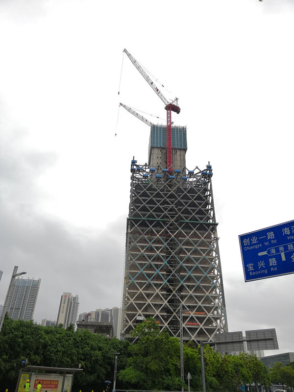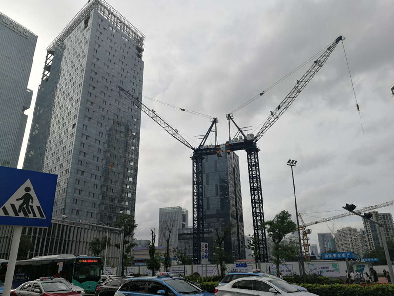 施工高度317.6米,采用中昇建機(jī)兩臺(tái)ZSL750(最大吊重50t)