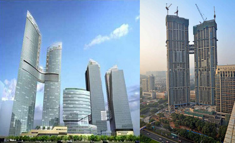 施工高度342m,采用中昇建機ZSL850(50T)兩臺,ZSL380(32T)一臺