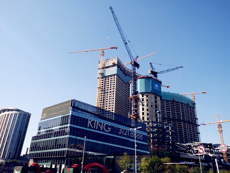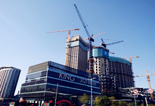 建筑主體高度438米,采用中昇建機(jī)ZSL1250(64T)及ZSL380(32T)各一臺。
