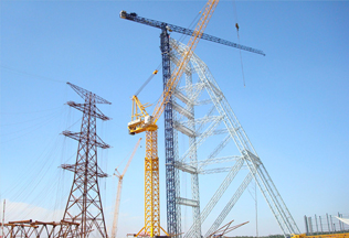 采用中昇建機ZSC80325一臺 幅度在23米處最大吊重達120t(雙小車),在最大幅度80米處可吊重達32.5t(單小車)