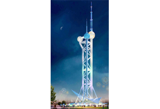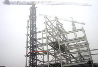 施工高度264.8米,采用中昇建機(jī)內(nèi)爬動(dòng)臂式塔機(jī)ZSL1000(64t)兩臺(tái)