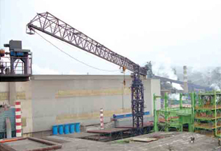采購(gòu)兩臺(tái)中昇建機(jī)門(mén)式行走塔式起重機(jī)ZSC28300、ZSC26300,立于船塢旁用于船舶的生產(chǎn)和維修。